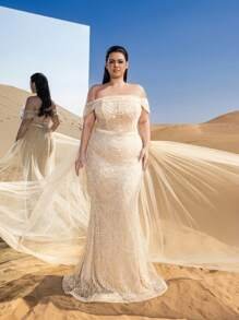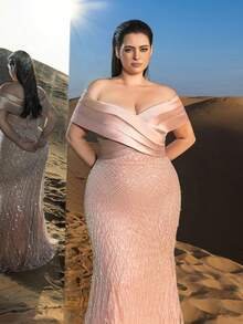SD3290 Off-Shoulder Beaded Mermaid Gown