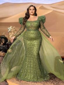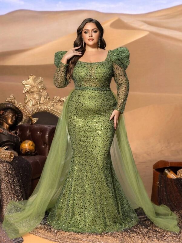 £266.61SD3286 Square-Neck Long-Sleeve Fish-Tail Gown