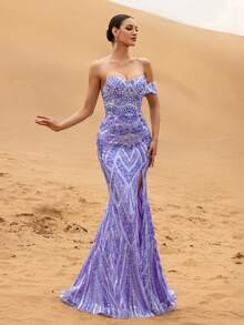 SD3216 Off-Shoulder Shimmering Fish Tail Gown