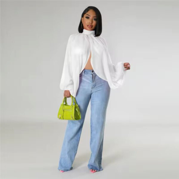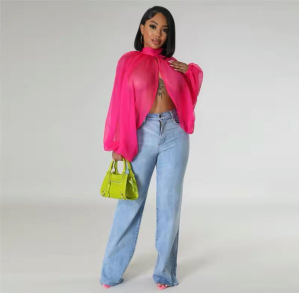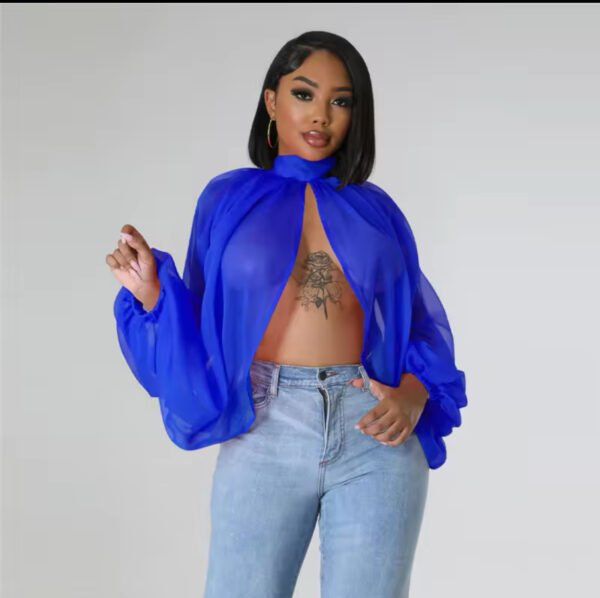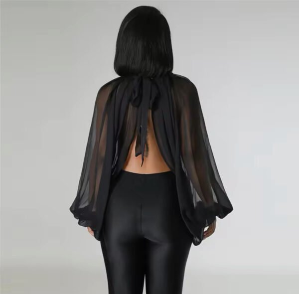 Loose chiffon printed blouse with long sleeve, crop top, backless ideal for party or clubbing.