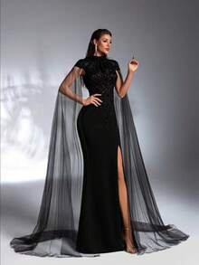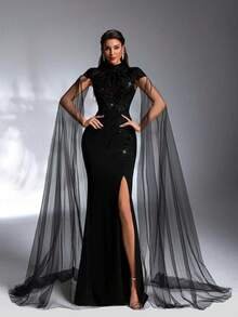 Commanding Elegance & High-Fashion Appeal Make a powerful and unforgettable statement with the SD3172 Luxury Black Evening Gown. This dress features a sophisticated high collar that exudes authority and grace, perfectly paired with a daring thigh-high slit to balance timeless modesty with modern allure.
