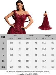£214.47SD3180 Red Asymmetric Bustier Sequin Gown