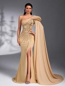 £194.28SD3169 Luxe Olive One-Shoulder Sequin Gown
