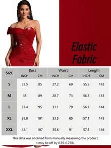 £214.47SD3180 Red Asymmetric Bustier Sequin Gown