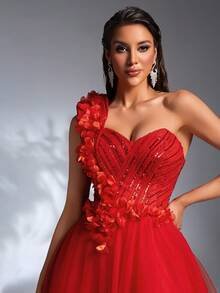 Dramatic Sculptural Elegance Make a grand, unforgettable entrance with the SD3195 Luxury Red Gown. This dress is defined by its avant-garde 3D shoulder design, which provides a high-fashion, structured silhouette that commands attention. The vibrant red color is perfectly suited for celebrations of love, success, and new beginnings.