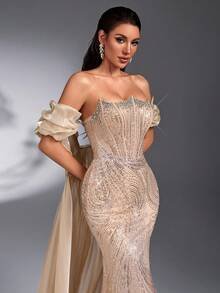 Modular Couture & Champagne Radiance The SD3203 Luxury Formal Gown is a versatile masterpiece that offers two distinct high-fashion looks in one. Featuring a detachable 2-piece design, this gown allows you to transition from a high-drama trailing ensemble to a sleek mermaid silhouette. The sophisticated champagne hue provides a soft, luxurious glow that is timelessly elegant for any elite evening affair.