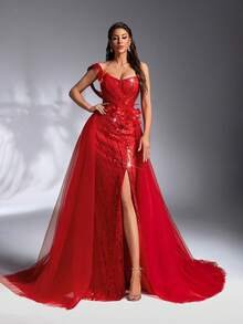 Dramatic Floral Artistry & Romantic Red Capture the room’s attention with the SD3205 Luxury Red Gown, a masterpiece of high-end fashion. This gown is defined by its vibrant red palette and exquisite 3D floral decor, which adds a sculptural, lifelike dimension to the bodice. The design flows into a majestic trailing tail, ensuring a queenly presence for your most significant formal entrances.