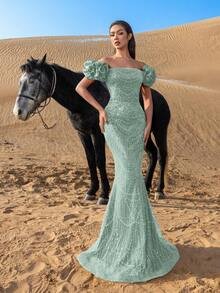SD3221 Off-Shoulder Puff Sleeve Mermaid Gown