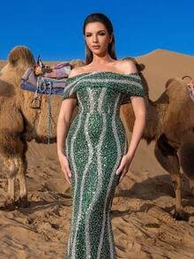 Sultry Sophistication & Timeless Curves Define elegance in the SD3226 Haute Glamour Evening Gown. This dress features a stunning off-shoulder neckline that highlights the décolletage and shoulders with effortless grace. The precision-tailored mermaid hem creates a dramatic hourglass silhouette, flaring perfectly at the floor to ensure every step you take is a statement of high-fashion poise.