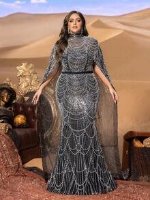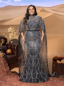 Regal Architecture & Majestic Movement Command the room with the SD3232 Plus Size Evening Gown, a design that balances authoritative structure with ethereal grace. This gown features a sophisticated mock neck and a precision-tailored fishtail silhouette engineered to celebrate and support your curves. The standout feature is the dramatic cape-sleeve overlay, which adds a layer of royal volume and fluid motion to every step you take.