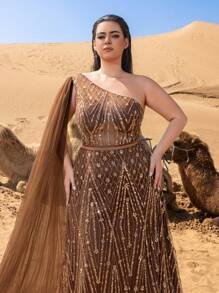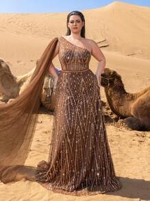 Asymmetrical Power & Statuesque Drama Redefine modern opulence with the SD3236 Haute Glamour Plus Gown. This architectural masterpiece features a striking one-shoulder neckline that balances bold asymmetry with classic grace. The design is elevated by a dramatic cape sleeve on one side, creating a majestic, wing-like silhouette that flows behind you with every step, ensuring a commanding presence at any high-profile gathering.