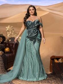Stunning Architecture & Cinematic Flair Step into a world of pure opulence with the SD3248 Haute Glamour Plus Gown. This design features a classic strapless silhouette that beautifully frames the décolletage and shoulders, leading into a masterfully tailored mermaid fit that celebrates every curve. The piece is finished with a breathtaking, flowing tulle train, adding a layer of ethereal drama and movement that ensures your exit is just as memorable as your entrance.
