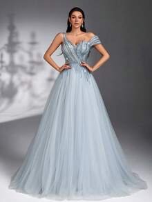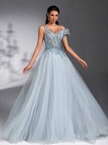 Intricate Beaded Embroidery & “Heavy-Duty” Artistry True to our “Deluxe Edition” standards, the bodice is transformed by high-density hand-applied beaded embroidery. These shimmering embellishments are woven into the delicate tulle, providing a multi-dimensional glow that catches the light with every turn. Despite its ethereal appearance, the “heavy-duty” luxury construction ensures a structured and supportive fit, providing the premium weight and internal poise required for a red-carpet-ready profile.