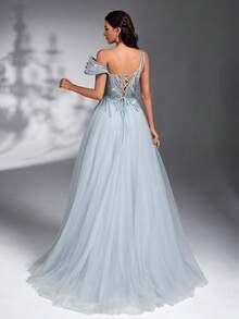 £194.28SD3174 Luxury Asymmetric Sequin 3D Floral Gown