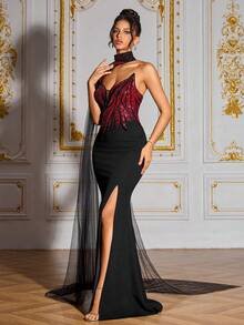 £206.77SD3186 Luxe Asymmetrical Beaded Mesh Gown