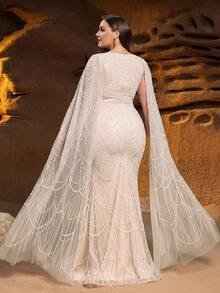 Cinematic Architecture & Regal Coverage Command the room with the SD3288 Haute Glamour Plus Gown, a masterpiece of high-fashion drama and statuesque elegance. This design features a sophisticated V-neckline that perfectly balances the modest, full-coverage allure of its most striking feature: floor-length split sleeves. These elongated sleeves create a cape-like effect, offering a majestic silhouette and sweeping movement that ensures a powerful, red-carpet-ready entrance.
